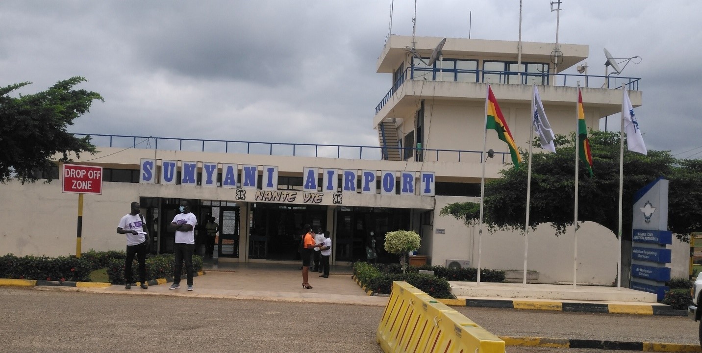Ongoing works at the Sunyani airport include expansion and upgrading of the runway construction of a 90 by 60 metre apron and fixing of fittings at the terminal building among other civil works.