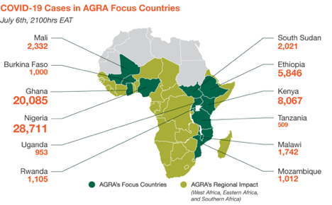 As COVID-19 cases continue to increase in AGRA-focus (1) countries, food insecurity remains a concern as economies suffer, AGRA’s COVID-19 Situation Report Number 5 for July 2020 states.