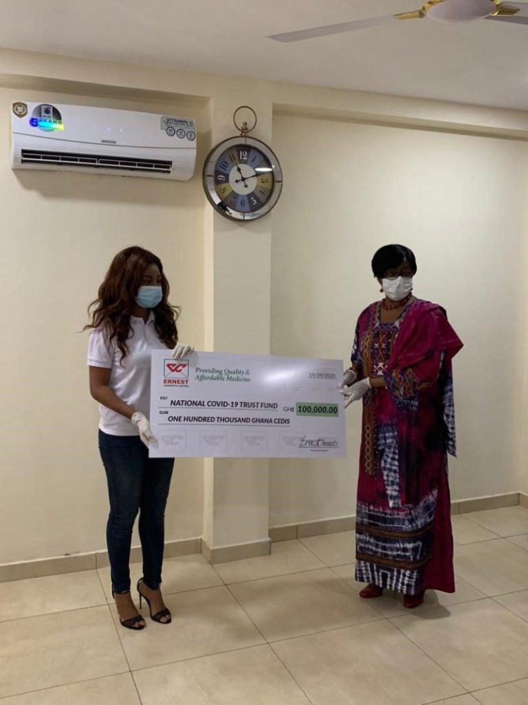 Pharmaceutical firm Ernest Chemists Limited has supported four more hospitals with medical supplies, and presented a cheque for GH¢100,000 to the National COVID-19 Trust Fund to help in the fight against the coronavirus pandemic.