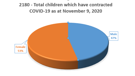 In Ghana, the data projects a low incidence of COVID-19 among children. The national data show that from March 11 to November 9, 2020, out of the 49,202 who contracted the COVID-19 virus, 2,180 children below 18 years have contracted the virus – representing 4.43% of the total contraction rate in Ghana.