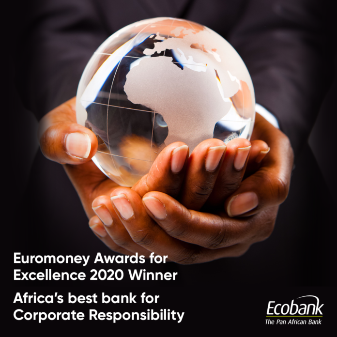 The leading pan-African banking group, Ecobank, has won the coveted prize of Africa’s Best Bank for Corporate Responsibility in the Euromoney Awards for Excellence 2020. Euromoney recognises Ecobank’s focus on sustainability and partnerships and its core capabilities in delivering positive social and environmental outcomes across Africa.