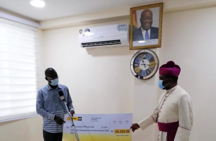 A representative of the Board of Trustees for the National COVID-19 Trust Fund, Archbishop Justice Ofei Akrofi, received the cheque on behalf of the Board and called on other corporate bodies to emulate the kind gesture of Mantrac Ghana.