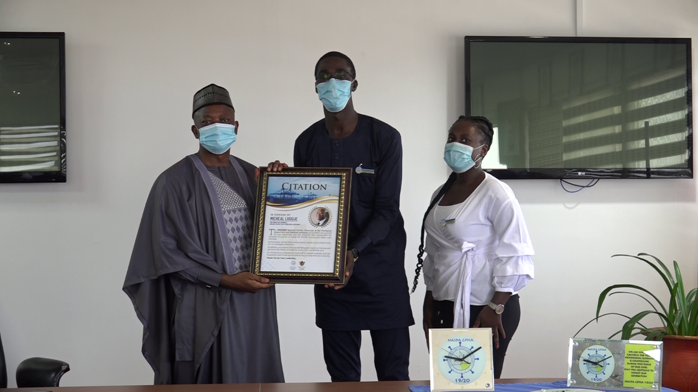The executives of the 2019/2020 batch of the National Service Personnel, numbering 481, whose tenure was somewhat shortened by the Coronavirus pandemic have presented some items as a token of their gratitude to the Port Authority for the opportunity given them.